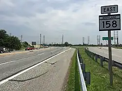 Maryland Route 158 (MD 158) is a state highway located in Baltimore County in the U.S. state of Maryland. Known as Bethlehem Boulevard, the state highway runs 2.35 miles (3.78 km) from Riverside Drive in Sparrows Point east to North Point Road in Edgemere. MD 158 parallels Interstate 695 (I-695) along the northern edge of the former Bethlehem Steel complex at Sparrows Point and connects MD 157 with MD 151. Bethlehem Boulevard was constructed as a four-lane divided county highway with several interchanges in the late 1950s. The highway was designated MD 158 in the early 1990s. When I-695 was completely rebuilt and expanded from two to four lanes through Sparrows Point and Edgemere in the late 1990s, MD 158 was also reconstructed as a mostly two-lane highway without interchanges.
