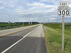 MD 300 is officially separated into two sections by the US 301 superstreet intersection; MD 300 runs east of US 301 and MD 300A is the portion west of the U.S. Highway.[1] The portion of the highway from US 301 to the Delaware state line is a part of the main National Highway System and that federal system's connection between US 301 and Dover also via DE 300, DE 44, and DE 8.[3][4]
