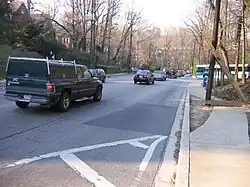 MD 513 was widened with a pair of 10-foot-wide (3.0 m) bituminous shoulders from MD 410 toward Sligo Avenue in 1942.[10] MD 320 was expanded to a width of 24 feet (7.3 m) and resurfaced over its entire length in 1947 and 1948.[8][11] MD 320's bridge across Long Branch was widened in 1953 and 1954.[12] The highway's bridge across Northwest Branch at the MD 650 junction, which had originally been built in 1910, was widened in 1954 and 1955.[13][14] MD 320 was placed on its present course in 1955; its northern end was truncated at MD 650.[15] Its southern portion was moved from Sligo Avenue and replaced MD 513 through Takoma Park; Sligo Avenue was redesignated MD 339.[15][16] MD 339 was removed from the state highway system by 1999.[17]