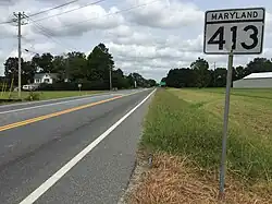 MD 413 is part of the Chesapeake Country Scenic Byway, which consists of various roads near the Chesapeake Bay on the Eastern Shore of Maryland.[3] It is also part of the Beach to Bay Indian Trail, a Maryland Scenic Byway that connects Ocean City on the Atlantic Ocean to Smith Island in the Chesapeake Bay and is noted by signs along the route.[4][5]