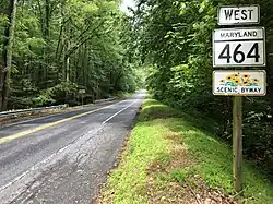 Maryland Route 464 (MD 464) is a state highway in the U.S. state of Maryland. Known for most of its length as Point of Rocks Road, the state highway runs 8.10 miles (13.04 km) from MD 17 and MD 79 in Rosemont east to Ballenger Creek Pike in Point of Rocks. MD 464 connects Brunswick with U.S. Route 15 (US 15) in Point of Rocks in southern Frederick County. The state highway was constructed from Brunswick starting in the early 1930s. The highway was constructed west from Point of Rocks in the late 1930s; the gap in the middle was filled in the early 1940s. In 1950, MD 464 was extended west through Brunswick to Knoxville. MD 464 was placed on its present course between Brunswick and Rosemont in 1968.