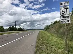 - MD 51E is the designation for Uhl Highway, a 2.24-mile (3.60 km) section of old alignment that runs from MD 51 a short distance south of MD 639 south to MD 51's intersection with Pittsburgh Plate Glass Road in North Branch.[1][24]