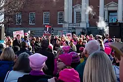 Until 2017, there was a statue of Roger B. Taney, Chief Justice of the United States, on the lawn of the State House. The statue was erected in 1872. The statue of Taney, a Marylander, was controversial because of Taney's support for slavery and his authorship of the U.S. Supreme Court decision in Dred Scott v. Sandford (1857), which upheld the denial of citizenship to African Americans. As a result, a movement in support of removing the statue emerged.[13] At first, the State House Trust—made up of the governor, the speaker of the state house, the president of the state senate, and the chair of the Maryland Historical Trust Board of Trustees—responded by adding interpretive plaques "explaining the controversy over his divisive opinion and its place in the evolution of the nation's stance toward slavery."[13] The Trust also added a statue of Marshall on Lawyers Mall, and agreed in 2016 to place statues of abolitionists Harriet Tubman and Frederick Douglass in the State House.[13] In the wake of the Charlottesville car attack in 2017, House Speaker Michael E. Busch called for the removal of the Taney statue,[14] as did Governor Larry Hogan a day later.[15] It was removed just after midnight on August 18, 2017.[16]