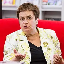 Maryna Villivna Hrymych (Ukrainian: Мари́на Ві́ллівна Гри́мич; born 1961) is a Ukrainian novelist and academician. Ph.D. in Philology and History (Candidate of Philology, Doctor of History). Editor in Chief of the Publishing House Duliby. Producer of the literary project Lyuba Klymenko. Member of the Writers Union of Ukraine, member of the Canadian Union of Ethnology.