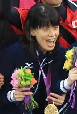 Masae Komiya (小宮 正江, Komiya Masae; born 8 May 1975[4]) is a Japanese goalball player with a congenital visual impairment. She was part of the bronze medal-winning Japanese women's team at the 2004 Summer Paralympics.[2] At the 2012 Summer Paralympics she captained the gold medal-winning Japanese women's team. After the game she stated "The day [we waited for] finally came. I was so overcome with emotion that I couldn't finish singing the 'Kimigayo' national anthem."[5]