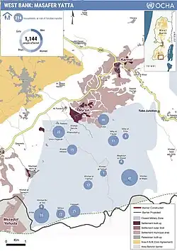 - ^ "Fact sheet: Masafer Yatta communities at risk of forcible transfer | June 2022". United Nations Office for the Coordination of Humanitarian Affairs – occupied Palestinian territory. 6 July 2022.