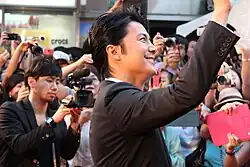 ![]() Fukuyama in Taipei, promoting his film Midsummer's Equation (2013). | |