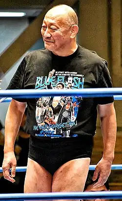 Masanobu Fuchi (渕 正信, Fuchi Masanobu; born January 14, 1954) is a Japanese professional wrestler signed to All Japan Pro Wrestling (AJPW), where he is also a director and the co-head booker.[1] Fuchi has exclusively worked for All Japan since his debut in 1974, and holds the record for the longest World Junior Heavyweight Championship reign at 1,309 days. Fuchi became a freelancer in 2009, but officially re-signed with AJPW in 2013 as both a director and wrestler, making him the longest tenured member of the All Japan roster.