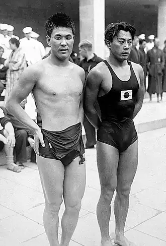 ![]() Shigeo Arai and Masanori Yusa (right) at the 1936 Olympics | |