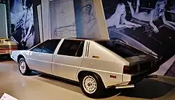 The Medici I was built in the spring of 1974, and it shared many design elements with Giugiaro's previous Asso Di Picche concept.[4] One influential feature of the Medici I was the trapezoidal C-pillar, which became wider as it ran down the side of the car.[3] Giugiaro later used this design in many different cars, including the Lancia Delta I and the 1980 Audi Coupé.[3] While the Medici's C-pillar was made of solid sheet metal, other vehicles such as the Audi 80 B2 and the Yugo Florida had an additional trapezoidal window in the C-pillar.