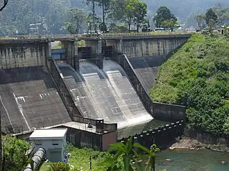 The Maskeliya Dam (also known as the Maussakelle Dam) is a large gravity dam at Maskeliya, in the Central Province of Sri Lanka. Along with the Castlereigh Dam, the dams are the highest point and beginning of the Laxapana Hydropower Complex, involving a number of dams, penstocks, and hydroelectric power stations. The dam creates the Maskeliya Reservoir over the route of Maskeliya Oya, a major tributary of the Kelani River, which is the 4th longest in the country.[1]