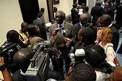 Furthermore, Rawlings had pledged to uphold Chapter 12 of the Constitution of Ghana, promoting press freedom, responsibility of both private and state outlets and these freedoms to be additional to human rights.[9] A new 15-member National Press Commission (later Ghanaian Media Commission) was created that was independent of government, which would uphold the aforementioned responsibilities. Despite these new reforms, President Rawlings and the NDC government remained critical of the private press, calling it "politically irresponsible" and motivated by profit.[1] One government official claimed the private media "tested the limits of the government", while others accused it of portraying Parliament as inferior.[3] A group named Friends of Democracy claimed it had 1,000 signatories protesting against the private media.[10] Editors from the Free Press and New Statesman had reported being sent death threats from the NDC for criticising the regime.[3] Valerie Sackey who was an assistant to President Rawlings, noted that the private press had a duty to provide legitimate criticism of the government and to act responsibly, rather than simply portraying that the government was attempting to muzzle them.[3]