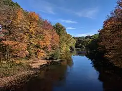 The Pennacook and Pawtucket lived north of the Massachusett tribe, the Nipmuc to the west, Narragansett and Pequot to the southwest in Rhode Island and Connecticut, and Pokanoket, now known as Wampanoag to the south.[5][4] Anthropologist John R. Swanton wrote that their territory extended as far north as what is now Salem, Massachusetts, and south to Marshfield and Brockton. He wrote later they claimed lands in the Great Cedar Swamp (near present-day Lakeville), previously controlled by Wampanoag.[6] In contrast, contemporary source Daniel Gookin lumps present day Salem (Naumkeag) with the Pawtucket, but extends the authority of the Massachusett sachem as far north as Lancaster, Massachusetts (Nashaway) and as far west as present day Deerfield, Massachusetts (Pocumtuc).[5]
