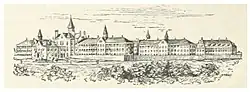 MCI-Framingham was proposed in 1872 as a reform to incarcerate women and men in different prisons in Massachusetts.[2] The prison opened in 1877 and was the second prison for women opened in the U.S. Several references note it as the oldest female correctional institution (of those still in operation) in the United States.[3] Its original name was the Sherborn Reformatory for Women, because at the time of its establishment it was located in that town. In 1924, the town of Framingham acquired 565 acres in Sherborn, including the prison and its grounds.[4]
