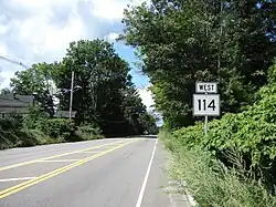 Route 114 is a 22.42-mile-long (36.08 km) Massachusetts state route that, while essentially a northwest–southeast route, is signed west–east. It runs from Route 28 in Lawrence to its terminus at Route 129 in Marblehead. The route is entirely located in Essex County.