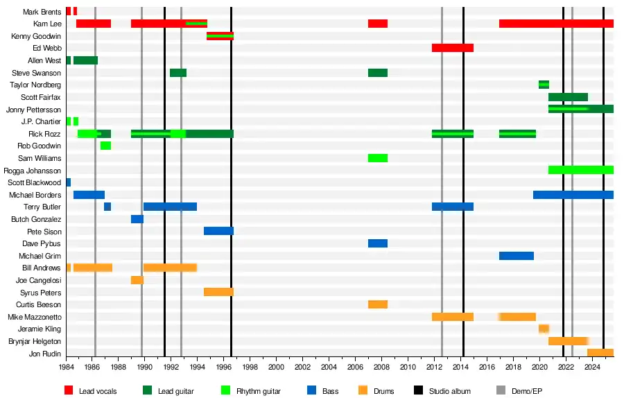 - Kam Lee – lead vocals (1984–1987, 1989–1994, 2006–2007, 2017–present)