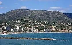 The Massif des Maures (French: [ma.sif de moʁ], "plateau of the Moors") is a small mountain range in southeastern France. It is located in the department of Var, near Fraxinet and between Hyères and Fréjus. Its highest point, at Signal de la Sauvette, is 780 m (2,559 ft) high.