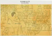The quite well preserved decoration in the mastaba chapel LG75 was recorded by Lepsius.[9] redrawn and lithographically printed. A general description of the chapel decoration was given by Junker[6] and later Kormysheva et all.[7]