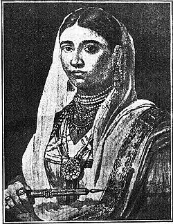 Mastani (29 August 1699 – 28 April 1740) was either the daughter of Nizam Asaf Jah I of Hyderabad or Chhatrasal Bundela of Bundelkhand.[1][2][3] She was the second wife of the Maratha Peshwa (Prime Minister) Baji Rao I. The marriage was arranged to promote diplomatic ties with the Maratha Empire.[3][4] Her relationship within the Maratha Brahmin family has been subject of both admiration and controversy[5][6] and well adapted in Indian novels and cinema.[7][8][9][10][11]