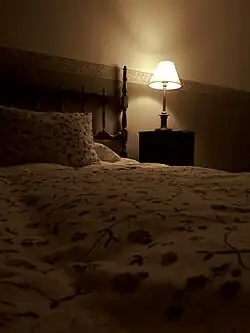 The first coil spring mattress was not invented until 1871.[2] The most common and most purchased mattress is the innerspring mattress, though a wide variety of alternative materials are available including foam, latex, wool, and even silk. The variety of firmness choices range from relatively soft to a rather firm mattress. A bedroom may have bunk beds if two or more people share a room. A chamber pot kept under the bed or in a nightstand was usual in the period before modern domestic plumbing and bathrooms in dwellings.