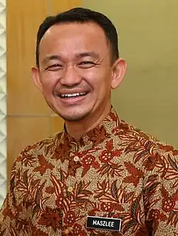 Maszlee bin Malik (Jawi: مزلي بن مالک, born 1974) is a Malaysian politician who has served as Chairman of the International Institute of Advanced Islamic Studies (IAIS) since March 2023.[1] He served as the Minister of Education in the Pakatan Harapan (PH) administration under former Prime Minister Mahathir Mohamad from May 2018, until his resignation in January 2020, the 7th President of the International Islamic University Malaysia (IIUM) from September 2018 to his resignation in November 2018, and the Member of Parliament (MP) for Simpang Renggam from May 2018 to November 2022.[2] He is a member and Division Chief of Simpang Renggam of the People's Justice Party (PKR), a component party of the PH coalition, and a professor at the psychology and social sciences faculty at the University of Cyberjaya. He was an independent politician and a member of the Malaysian United Indigenous Party (BERSATU), then a component party of the PH coalition, as well as a lecturer at the IIUM.[3]