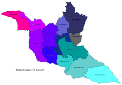Matabeleland South Province is divided into seven districts: Beitbridge, Bulilima, Gwanda, Insiza, Mangwe, Matobo, and Umzingwane.