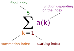 Mathematical notation is widely used in science and engineering for representing complex concepts and properties in a concise, unambiguous, and accurate way. This notation consists of symbols used for representing operations, unspecified numbers, relations and any other mathematical objects, and then assembling them into expressions and formulas.[94] More precisely, numbers and other mathematical objects are represented by symbols called variables, which are generally Latin or Greek letters, and often include subscripts. Operation and relations are generally represented by specific symbols or glyphs,[95] such as + (plus), × (multiplication), (integral), = (equal), and < (less than).[96] All these symbols are generally grouped according to specific rules to form expressions and formulas.[97] Normally, expressions and formulas do not appear alone, but are included in sentences of the current language, where expressions play the role of noun phrases and formulas play the role of clauses.