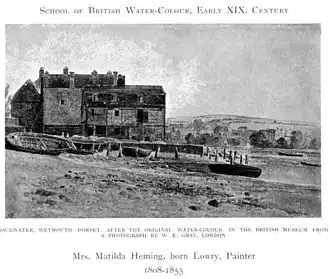 Heming was born in London, England. She was the daughter of Wilson Lowry. The engraver Joseph Wilson Lowry was her younger half-brother. She is known for watercolour portraits, but her landscape watercolour Backwater, Weymouth, was included in the 1905 book Women Painters of the World.[1] Today it is in the collection of the British Museum, along with a few more landscapes and a portrait she made of the writer Mary Somerville.[2]