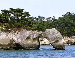 1. ^ a b 名勝・松島、崩落被害=「長命穴」消え、半壊の島も-国宝「瑞巌寺」は壁にひび (in Japanese). Jiji Press. March 19, 2011. Retrieved March 28, 2011.