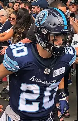 ![]() Webster before a Toronto Argonauts game in 2018. | |