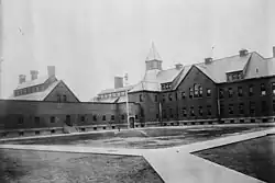 In 1886, a New York State legislative commission recommended the purchase of the 246-acre (100 ha) Dates Farm in the village of Matteawan for $25,000. The site was rural, yet accessible by rail and offered good tillable land, pure water and pleasant scenery between the Hudson River and the Fishkill Mountains. Architect Isaac Perry, known for finishing work on the New York State Capitol, was hired to design the main hospital building with "an abundance of light and ventilation" to accommodate 550 patients.[1] In April 1892, the Asylum for Insane Criminals, with 261 patients, was relocated from Auburn to its new site. The following year, it was renamed Matteawan State Hospital.[2]
