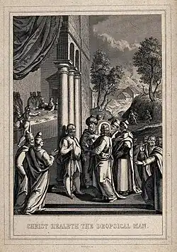 ![]() "Dispute of Jesus and the Pharisees over healing on Sabbath Day", engraving by Emile Rouargue. | |