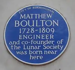 - ^ Birmingham Civic Society: Blue Plaques, Birmingham Civic Society, retrieved 11 January 2015