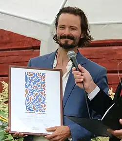 In 2014 Peterson was awarded the ASCAP Rudolph Nissim Award for orchestral composition.[5] The same year he won both first prize and the audience/radio-listener's prize at the Uppsala composer competition for And all the trees of the field will clap their hands for chamber orchestra,[6] and his true-crime opera Voir Dire was the winner of the Fort Worth Opera Frontiers showcase for new opera.[7] In 2021 Peterson was awarded the first Sven-David Sandström Choral Composition Award from the Royal Swedish Academy of Music.[8] The Royal Academy also awarded him with the 2023 Carin Malmlöf-Forssling composer prize.