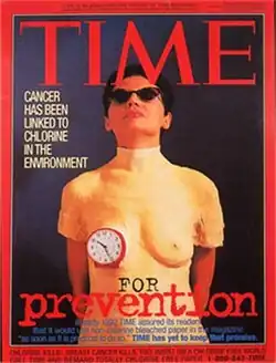 This historical publishing decision[37] made headline news for showing a "topless" cover girl on a mainstream magazine, and was viewed by many as ending the silence, shame and concealment for millions of women regarding their bodies and how they are portrayed by the media.[38] Breast Cancer advocates and activists were here to stay, and the breast cancer movement had been officially launched.[35]
