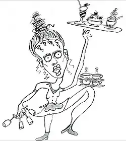 In the 1970s she modeled for Fabrizio Gianni in Italy, Christian Dior in France and Scott Barrie in NYC among others. In the late 1970s, Matuschka was the house model for The House of Julio. In 1978, the courtier designer Charles James proclaimed Matuschka to be "The Model of the Future".[15] Videographer Anton Perich frequently filmed Matuschka,[16] and broadcasts featuring her interviews at Bonwit Teller, catwalks and fittings at the Chelsea Hotel (with Couri Hay[17] and Charles James) and a 'couch cutting creation out of styrofoam'[18] with John Chamberlain (for the artist John R. Hersey) at the Dakota have been aired on Cable TV, Channel J, since the 1970s. Extensive video and still footage of Matuschka working with Charles James (by Anton Perich) was exhibited at the National Arts Club (NYC) in a show entitled Beneath the Dress[19] in 2014.