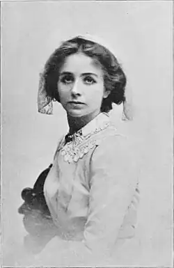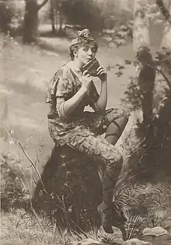 Maude Ewing Adams Kiskadden (November 11, 1872 – July 17, 1953), known professionally as Maude Adams, was an American actress and stage designer who achieved her greatest success as the character Peter Pan, first playing the role in the 1905 Broadway production of Peter Pan; or, The Boy Who Wouldn't Grow Up.[1] Adams's personality appealed to a large audience and helped her become the most successful and highest-paid performer of her day, with a yearly income of more than $1 million during her peak.[1][2]
