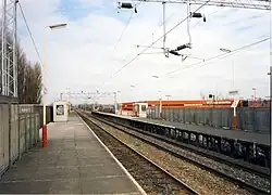 As part of a £12 million station modernisation programme on the Manchester Airport Line, rebuilding work on Mauldeth Road station commenced in autumn 2006.[4] Network Rail were able to keep the station operational for most of the time by demolishing the existing platforms in small parts and using temporary platforms. There was a temporary footbridge spanning the platforms while the pedestrians' access ramp to the northbound platform was out of use during renovation; the footbridge offered a vantage point for views over Manchester.[5] As part of the rebuilding work, new steel platforms, modern waiting shelters, new lighting and access ramps were constructed; the work was completed by June 2007.[6]