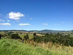About 2 km (1.2 mi) south west of the town,[24] Maungaturoto had a station on the North Auckland Line from 13 August 1915 to 12 June 1987. Passenger trains ended on 31 July 1967.[25] Refreshment rooms opened in 1923,[26] and had a hostel built for female refreshment room staff in 1940, but closed in November 1956. An engine shed was moved from Wellsford in 1920. Maungaturoto station also had a 30 ft (9.1 m) x 20 ft (6.1 m) goods shed, loading bank, cattle yards and a passing loop for 52 wagons. It was 89 mi 60 ch (144.4 km) from Auckland,[27] 3.82 km (2.37 mi) south east of Huarau and 6 km (3.7 mi) north west of Bickerstaffe.[28]