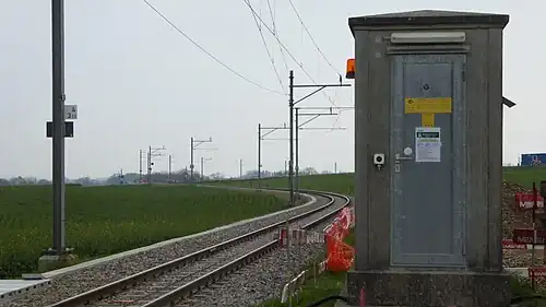 Mauraz railway station (French: Gare de Mauraz), is a railway station in the municipality of Hautemorges, in the Swiss canton of Vaud. It is an intermediate stop and a request stop on the 1,000 mm (3 ft 3+3⁄8 in) metre gauge Bière–Apples–Morges line of Transports de la région Morges-Bière-Cossonay.[1]