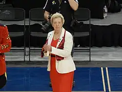 Under her leadership, the IWBF developed a new player classification and identity card system.[2] She strengthened the system of international zones, with teams earning slots for their zone at the Wheelchair Basketball World Championship and Paralympic Games.[3] She also established age-specific world championships. The first IWBF U23 World Wheelchair Basketball Championship for men was hosted in Toronto, Ontario, in 1997, followed by the 2011 Women's U25 Wheelchair Basketball World Championship in St Catharines, Ontario, in 2011.[2] She was as a Technical Delegate at three Paralympic Games, and was awarded the Queen Elizabeth II Diamond Jubilee Medal in 2012.[1] After stepping down as president of the IWBF in 2014, she remained a member of its executive council as its secretary general.[4] She was inducted into the Canadian Paralympic Committee Hall of Fame as a builder on 7 April 2017.[5] She retired as secretary general in September 2018, and accepted the title of honorary secretary general.[6][7]