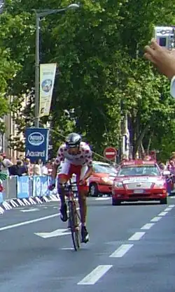 Juan Mauricio Soler Hernández (born January 14, 1983, in Ramiriquí, Boyacá) is a Colombian former professional road bicycle racer, who last rode for UCI ProTour team Movistar Team.[1] He competed in the Tour de France for the first time in 2007, winning stage 9, having broken away on the Col du Galibier. He won that year's King of the Mountains title. Soler stated the stage win was "a victory from heaven. It is the biggest win of my life, and in my first Tour de France. I didn't think it would come so quickly."[2] He finished 11th overall that year. Soler had a career-ending crash in the 2011 Tour de Suisse.