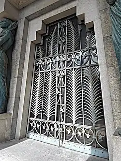 The Mausoleum was commissioned by the wealthy banker Matteo Schilizzi as a mausoleum to be placed in the Cemetery of Poggioreale, and the designs were by Alfonso Guerra. By the 1920s, the building was bought by the municipality, moved to the present site, and to serve as a mausoleum for soldiers and patriots. The work was completed by Alfonso's son, Camillo.[1] The Caryatids at the entrance are by Giovanni Battista Amendola.
