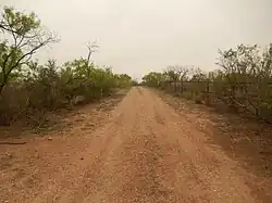 The El Camino Real, later known as the Old San Antonio Road, that crosses the Rio Grande, begins in East Texas and crosses southern Maverick County.[8] The trail was originally blazed by Alonso De León in 1690, and is said to have been traversed by more early Spanish explorers and settlers than any other section of the state.[9] In 1989, the legislature authorized the Old San Antonio Road Preservation Commission to coordinate the 1991 300th anniversary of the trail's founding.[10][11]