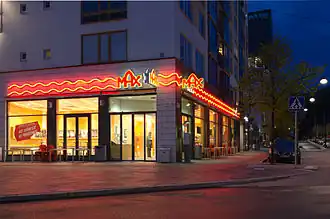 Max, formally Max Burgers Aktiebolag, is a Swedish hamburger chain founded in 1968 in Gällivare.[1] As of 2024, the hamburger chain had 155 restaurants in Sweden,[2] 26 restaurants in Poland,[3] eight in Norway[4] and six in Denmark.[5] The company had seven in Egypt operated through franchising.[6] From 2012 to 2018 Max also operated in the United Arab Emirates, also through franchising.[7] The company has approximately 6,500 employees and is owned and operated by the family of Curt Bergfors, its co-founder.[1]