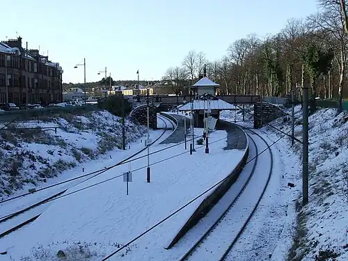 Maxwell Park railway station is a railway station in Pollokshields, Glasgow, Scotland, adjacent to the station is a park of the same name.[3] The station is managed by ScotRail and is located on the Cathcart Circle Line, which has been electrified since 1962 by British Railways.