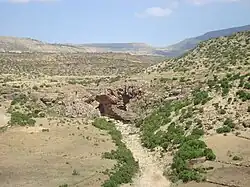 The May Be’ati is a confined ephemeral river with an average slope gradient of 45 metres per kilometre. With its tributaries, the river has cut a deep gorge.[2]