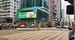 The climactic scene of the characters arguing was filmed at the junction of Nathan Road and Argyle Street, and the same scene was later filmed again during the second shoot in 2020, with both shoots conducted without authorisation.[14] During the first shoot, an elderly pedestrian mistakenly thought the argument was real and intervened to stop the fight.[14] Due to the ongoing social movement, Ren noted that the public was very sensitive about their filming, and numerous venues denied their requests to shoot.[15] Filming lasted only several days,[c] and was suspended in November, with only seven scenes completed,[23][25] citing reasons related to funding issues and the arrest of a lead actor during the Hong Kong Polytechnic University campus conflict.[21] The production team had intended to resume filming once after the Polytechnic University campus conflict, but ended up failed due to the emergence of COVID-19 pandemic.[23] It was originally set to include a scene shot in Taiwan, featuring a second suicide victim who was helped by firefighters and a conscientious police officer, but the scene was scrapped along with the filming suspension and was cut during the second shoot due to budget constraints.[13]