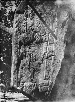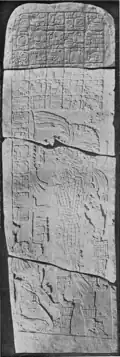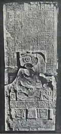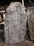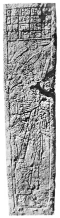 The function of the Maya stela was central to the ideology of Maya kingship from the very beginning of the Classic Period through to the very end of the Terminal Classic (800–900).[20] The hieroglyphic inscriptions on the stelae of the Classic period site of Piedras Negras played a key part in the decipherment of the script, with stelae being grouped around seven different structures and each group appearing to chart the life of a particular individual, with key dates being celebrated, such as birth, marriage and military victories. From these stelae, epigrapher Tatiana Proskouriakoff was able to identify that they contained details of royal rulers and their associates, rather than priests and gods as had previously been theorised.[21]