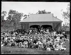 The Awabakal people are acknowledged as the descendants of the traditional custodians of the land where Mayfield is now located.[2] Material evidence of Aboriginal occupation of the land now known as Mayfield was originally discovered by Daniel F. Cooksey in June 1925.[3] He had located the first specimen of an Elouera, and other stone tools at a number of sites located along the south arm of the Hunter River, and of the former B.H.P Steelworks. Cooksey was formerly recognised for the find by W. W. Thorpe, the ethnologist with the Australian Museum, who, in 1928 traveled to Newcastle and officially reported the find.[4] Cooksey documented his work in news articles[5] and personal reports[6][7][8] now in the custody of the Archives of the University of Newcastle's Special Collections.